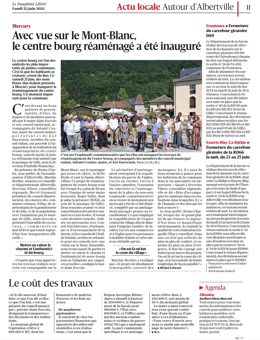 Article paru dans le Dauphiné Libéré du Mercredi 18 juin 2025